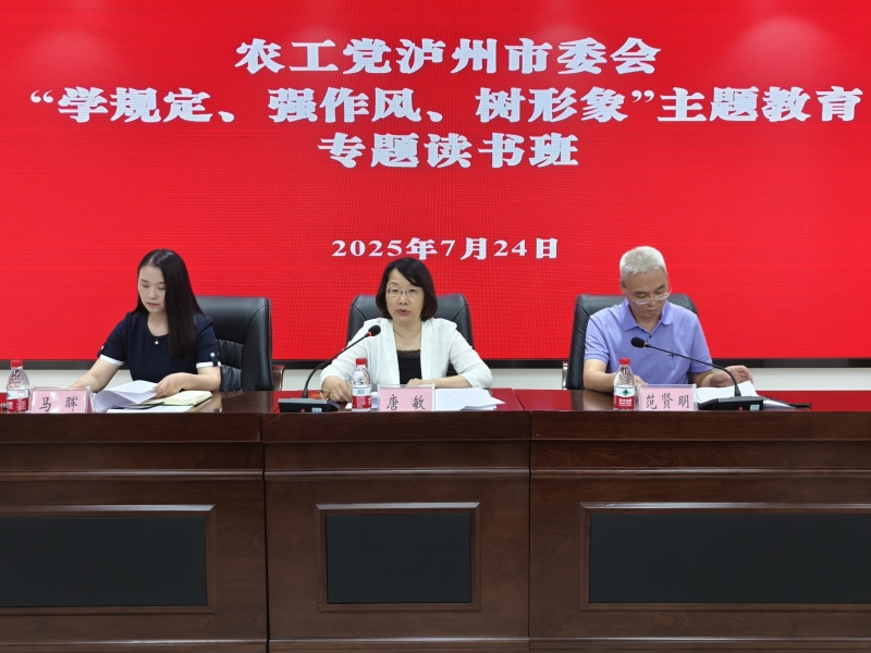 2025年7月24日,农工党泸州市委会举办“学规定、强作风、树形象”主题教育专题读书班活动,市委会主委、市政协副主席唐敏作动员讲话,市委会副主委范贤明主持活动,市委会副主委马晖出席活动。