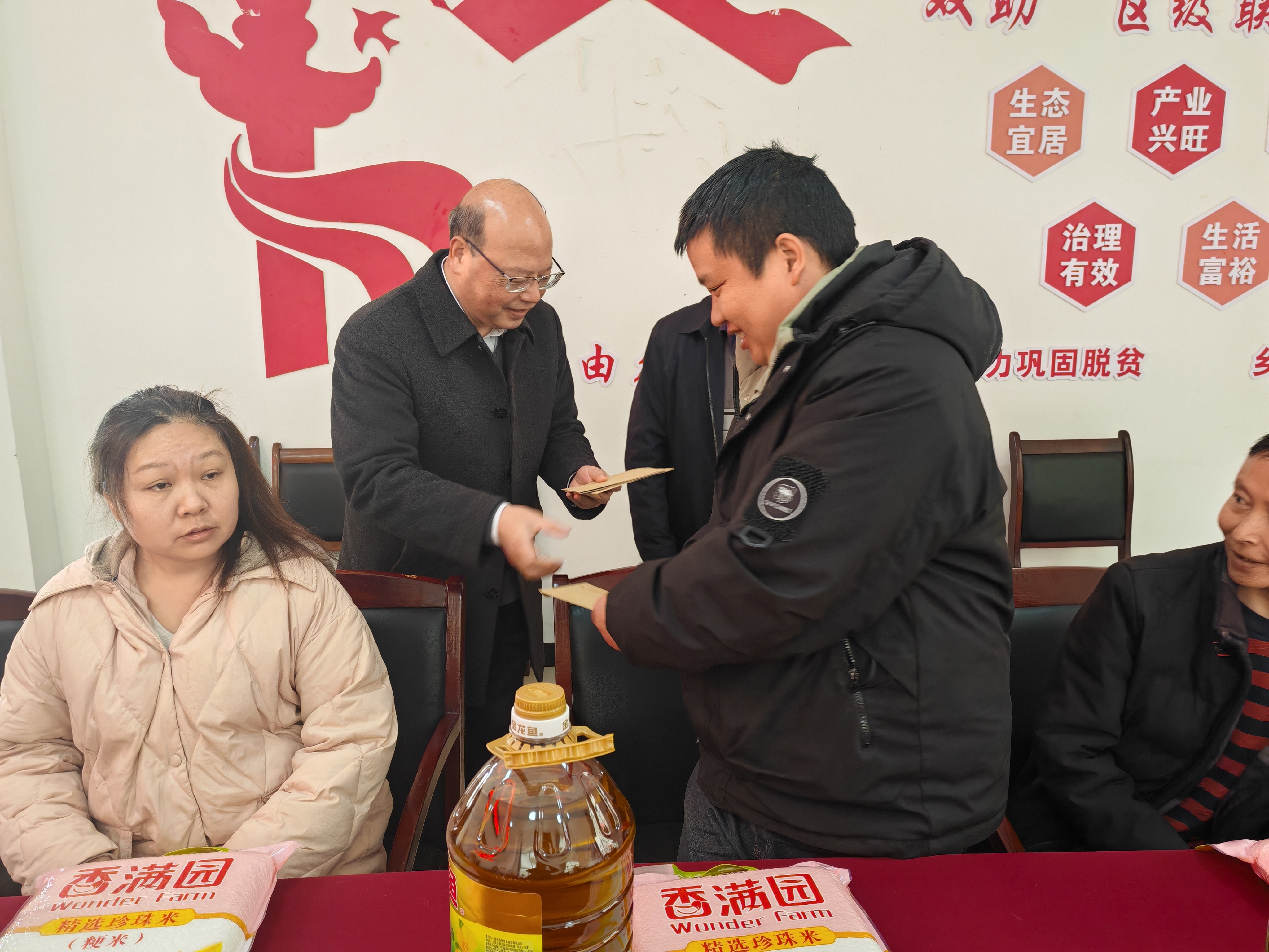 2月12日,农工党自贡市委会深入大安区何市镇五龙村开展“新春暖冬行”走访慰问活动,为当地群众送去慰问金和米、油等生活物资,将农工党组织的关怀与新春祝福送达群众心上。