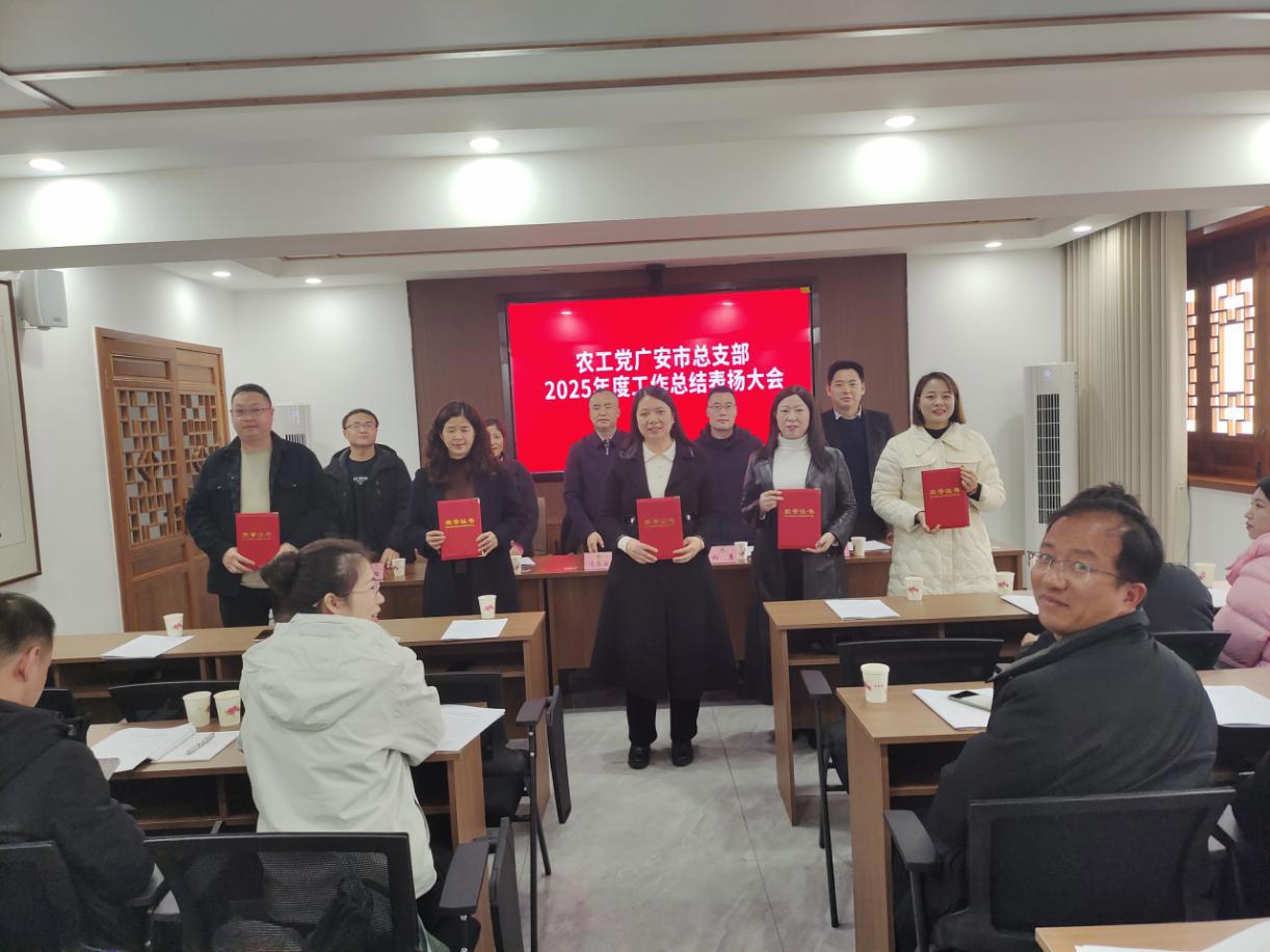 2026年1月15日,农工党广安市总支部2025年度工作总结表扬大会召开。市政协副主席、总支部主委冯昌安,市委统战部副部长、市侨办主任向勇出席会议并讲话,市公共资源交易中心主任、总支部副主委王海云主持会议。